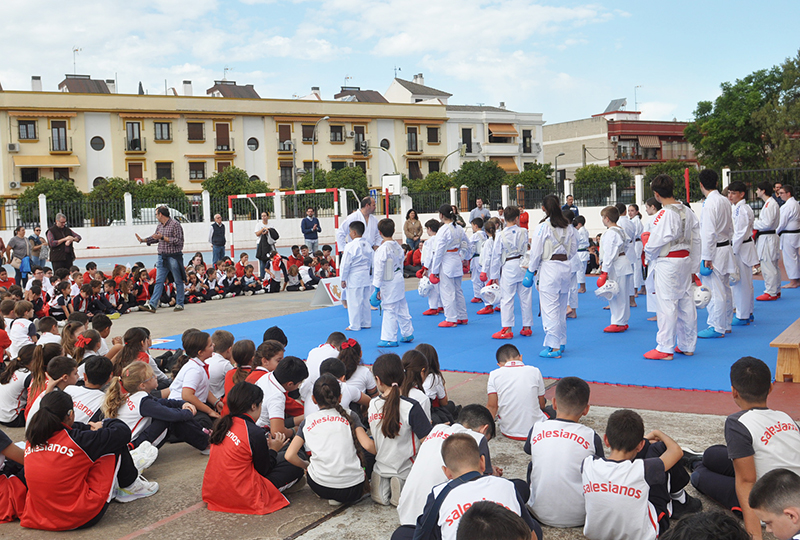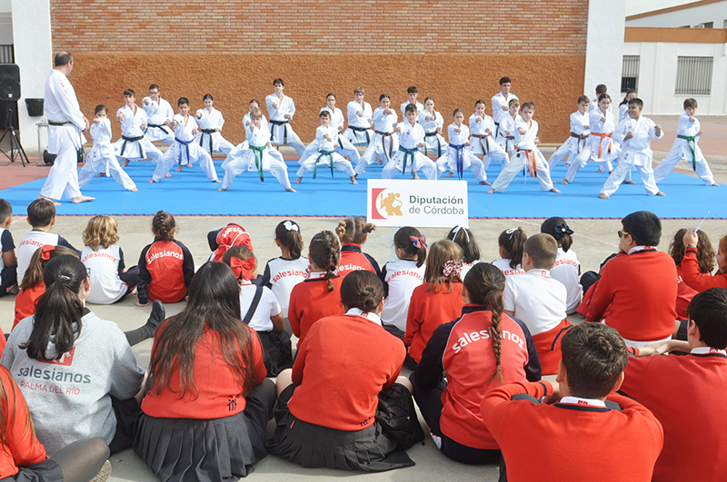 La jornada final se ha desarrollado en los colegios Inmaculada Concepción y Salesianos San Luis Rey de Palma del Río, donde un gran número de niños y niñas han podido descubrir los valores formativos y educativos del karate a través de actividades prácticas y demostraciones.
