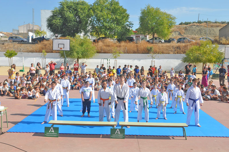 La demostración estuvo dirigida por el maestro de la Escuela Kimé, Juan Luis Garrote Gil, y contó con el apoyo incondicional del Concejal de Deportes del Excmo. Ayuntamiento de Villanueva del Río y Minas, Javier Sánchez, así como de la Directora del centro educativo, Toñi García.